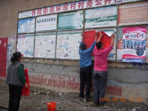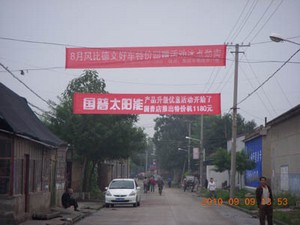 经销商悬挂过街条幅,以达到路过村民必看的效果