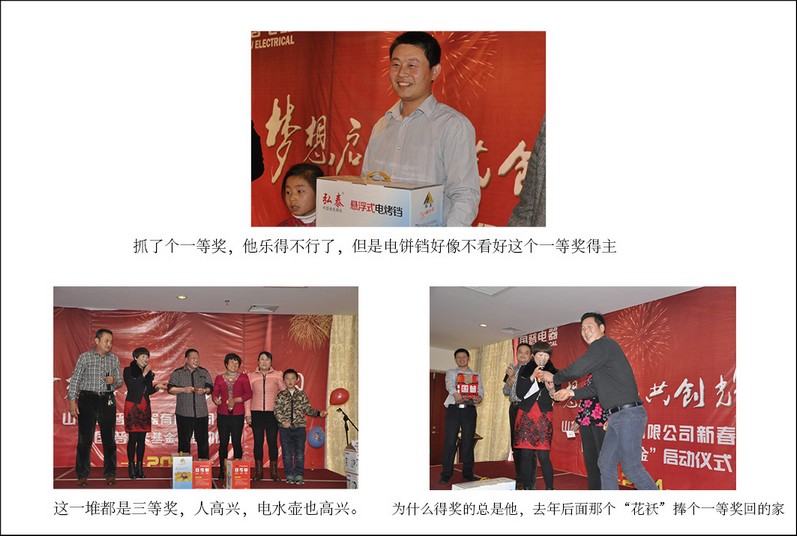 此次年会公司为员工提供了一个展示的舞台,使员工不断挖掘自身表演才能,丰富文化生活。互动游戏内容丰富、精彩纷呈,充分展现国普电器公司浓郁的企业文化氛围,公司领导与员工之间互动的游戏、激动人心的抽奖活动,歌声、掌声、欢呼声不时的在晚会现场上荡漾。