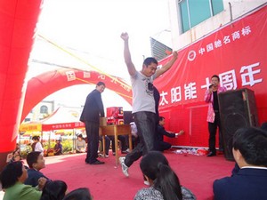 本次抄底行动,在国普公司区域负责人周玉庆经理的精心组织策划下和高桥总代理李善华经理的大力配合下,厂商互动,通力合作,创造了单个乡镇单场活动销售50台的佳绩。国普太阳能在沂水高桥经营了已经有九年的时间,国普品牌早已是家喻户晓,国普太阳能以过硬的产品质量,和当地代理商李善华经理良好的信誉和完善的售后服务使本次活动具有良好的群众基础,又恰逢国普太阳能公司十周年庆典,公司为本次活动设置了优厚的奖品,所以老百姓购机情绪异常高涨!