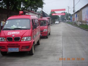 经销商利用宣传车队和高音喇叭宣传活动内容