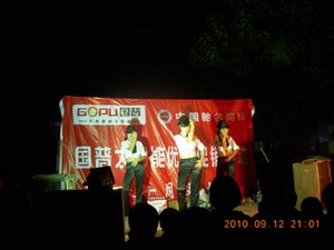 九月份,临淄专卖店—分店开业之际,在总代理吴经理精心策划和区域经理邴树伟经理的大力支持下,开展了一系列的形式多样的促销活动,车队高音喇叭宣传,张贴海报,悬挂条幅,夜场促销演出,有礼销售,购机抽奖等等老百姓喜闻乐见的宣传促销活动,活动不仅仅起到了良好的品牌宣传效果,并且活动中就达到了销售20余台的效果,并且订机意向强烈的也有10余台。这为国普太阳能在临淄地区的销售和普及,以及新专营店经营活动的奠定了良好的基础。